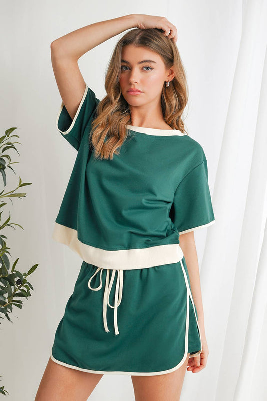 Colorblock Drop Shoulder T Shirt & Skirt Set