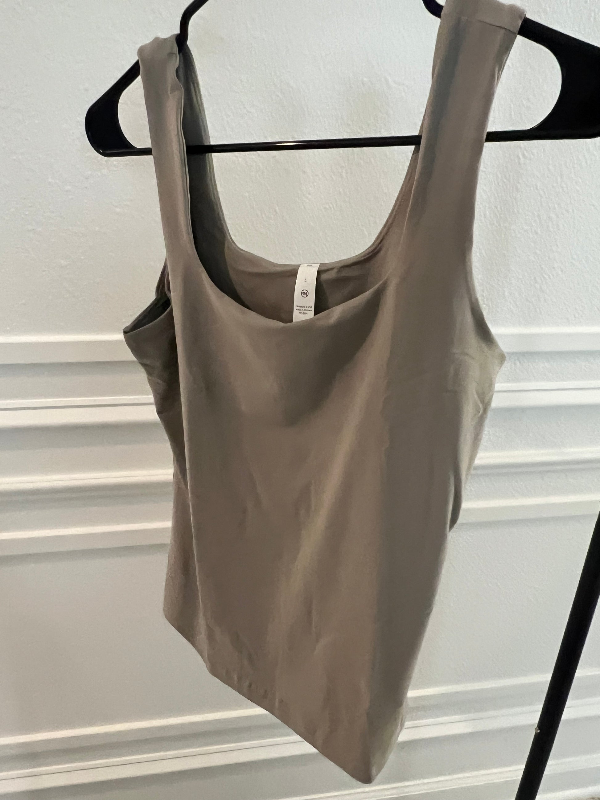 BUTTER FABRIC SQUARE NECKLINE SLEEVELESS TANK TOP- Stone Taupe